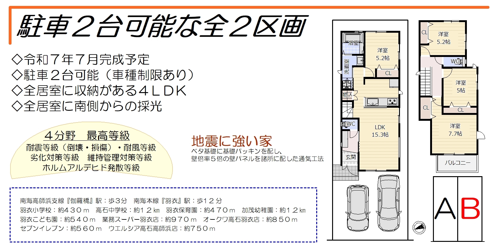 駐車2台可能な『地震に強い家』の全2区画、令和7年7月に完成予定