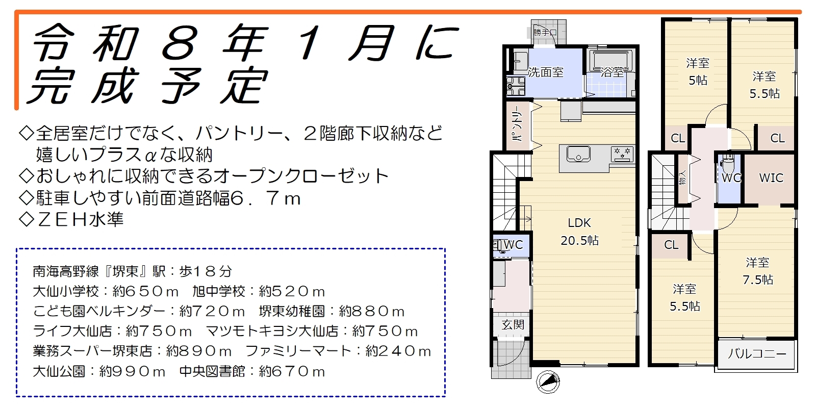 令和8年1月に完成予定、オープンクローゼットでおしゃれに収納できるお家