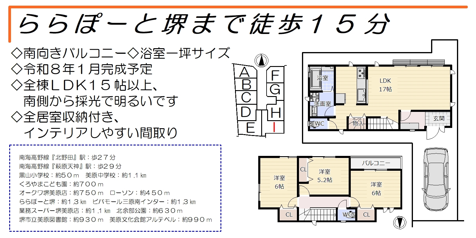 ららぽーと堺まで徒歩15分の全9区画、令和8年1月に完成予定