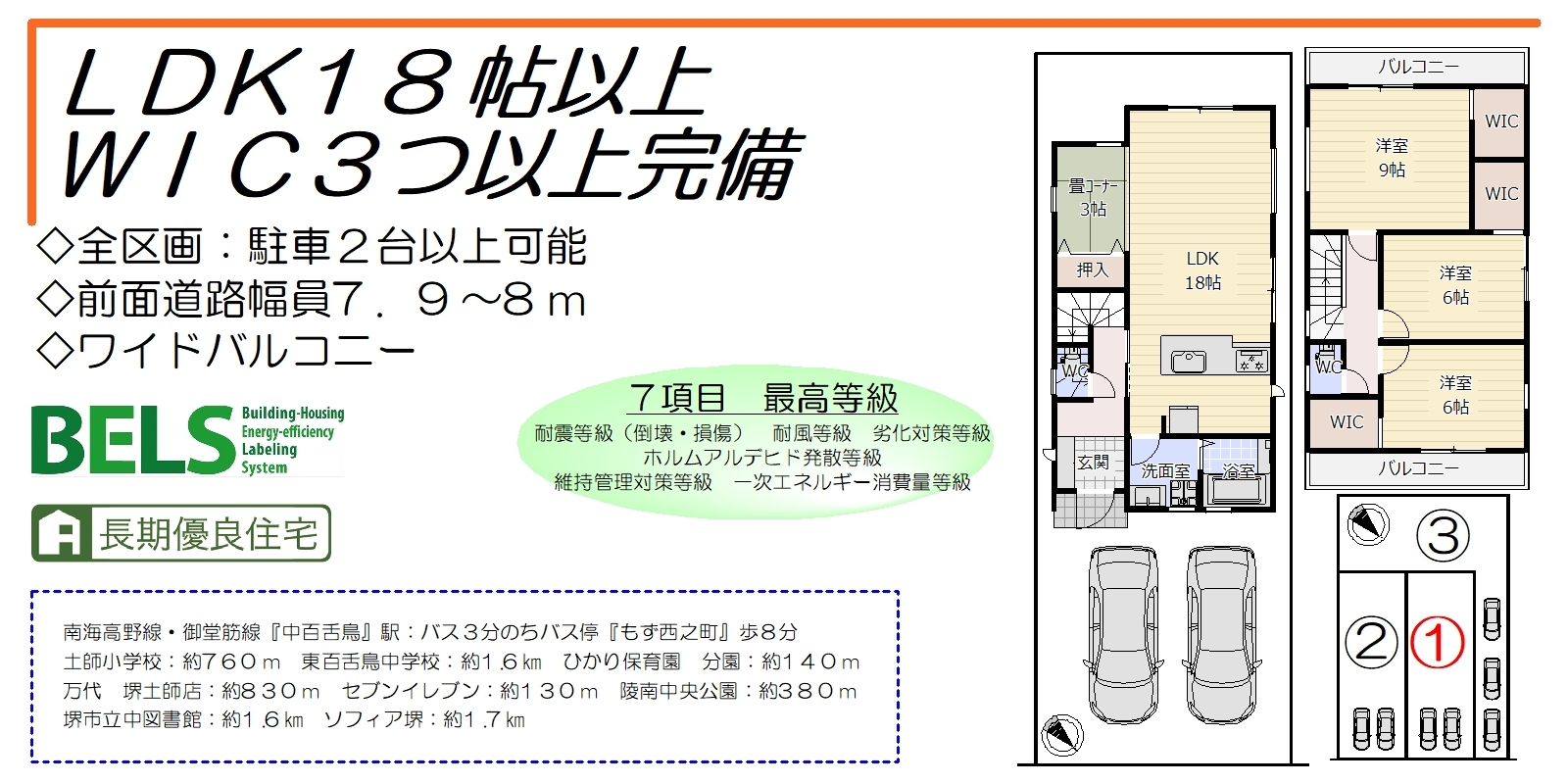 全区画、LDK18帖以上・WIC3つ以上完備!