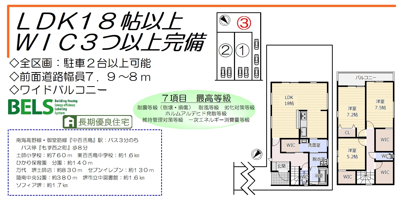 全区画、LDK18帖以上・WIC3つ以上完備!