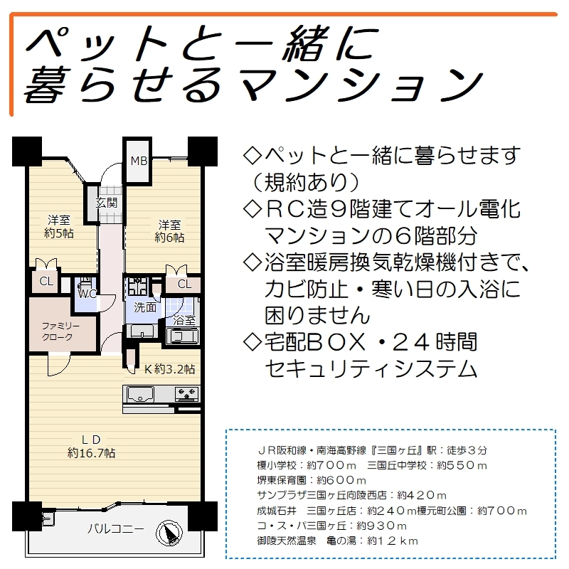 | 交通 | JR阪和線 三国ヶ丘駅 徒歩3分 南海高野線『三国ヶ丘』駅:徒歩3分 |