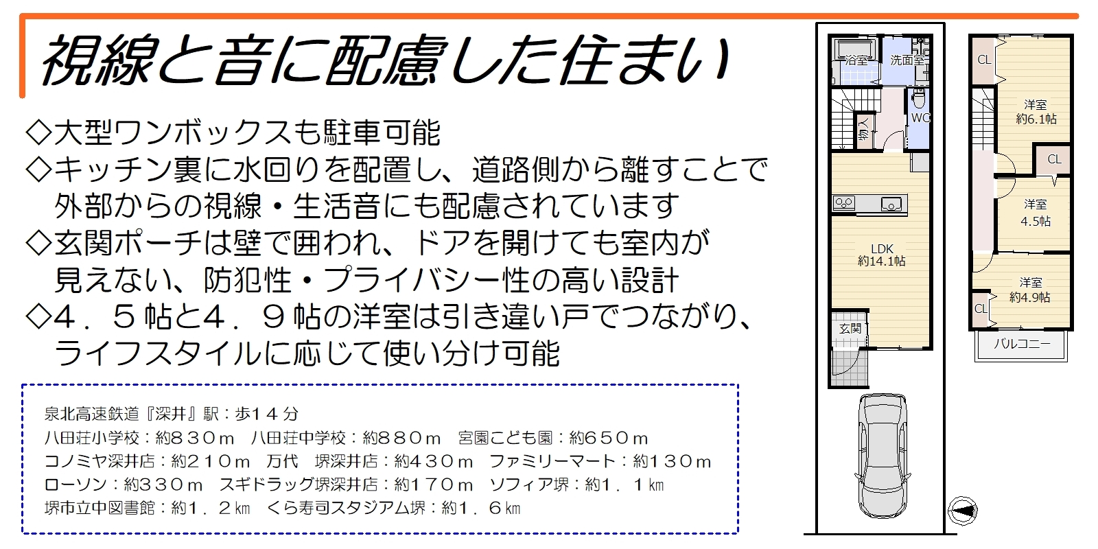- 泉北高速 深井駅 徒歩14分