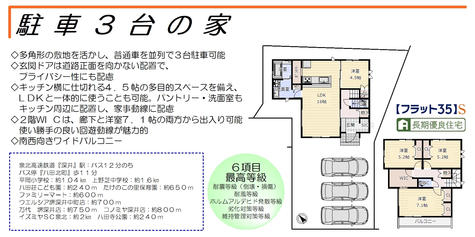 | 交通 | 泉北高速 深井駅 徒歩11分 バス12分のちバス停『八田北町』歩11分 |