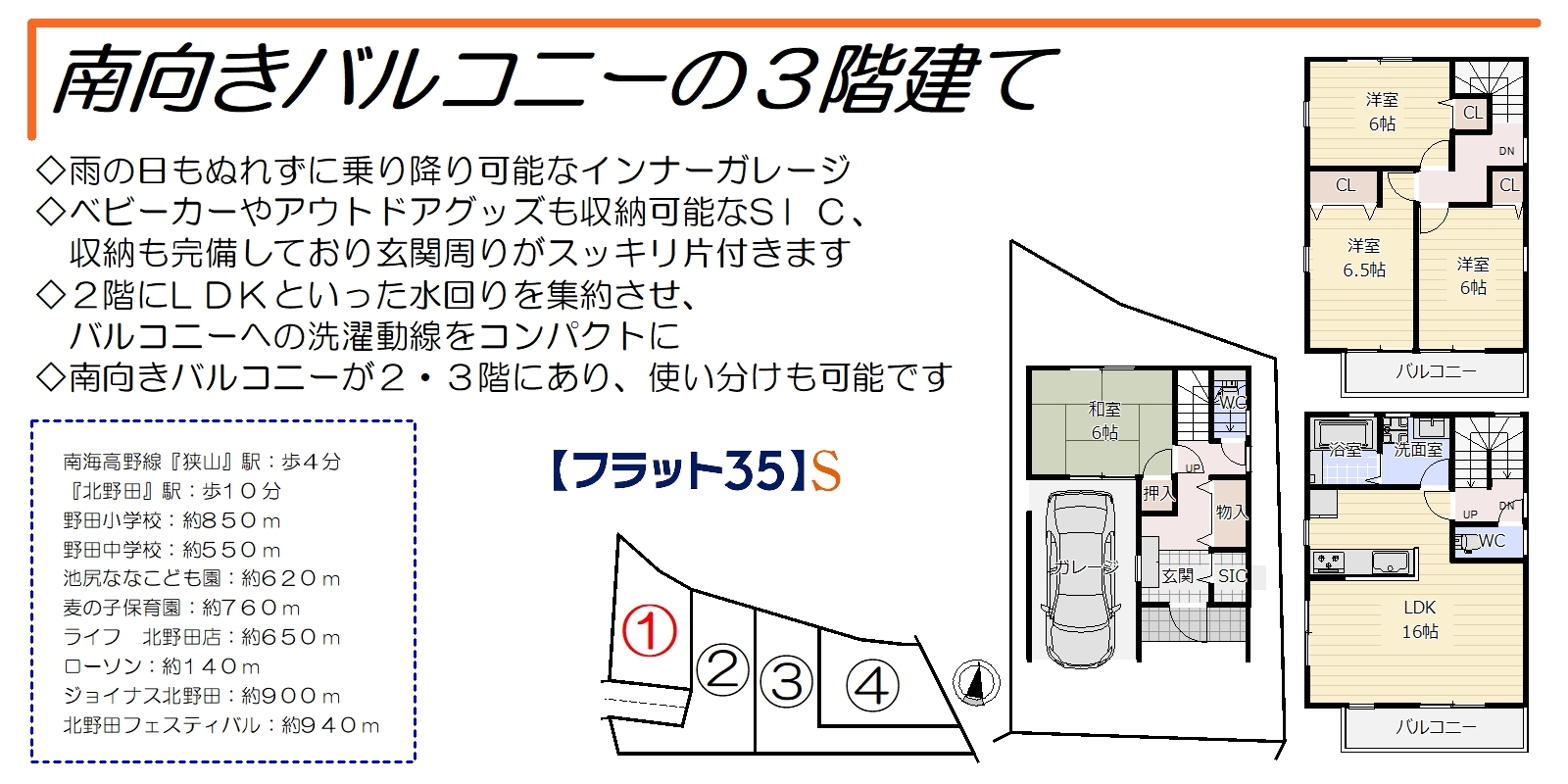 | 交通 | 南海高野線 狭山駅 徒歩4分 南海高野線『北野田』駅:歩10分 |