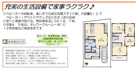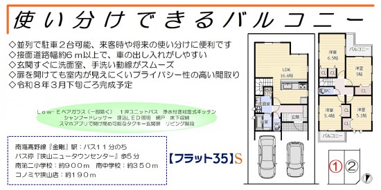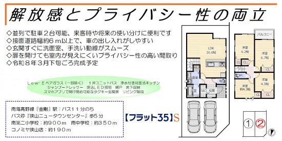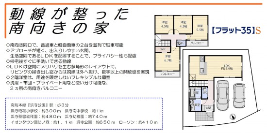南向きバルコニーの全4区画、4LDK×大型パントリーの2号棟
