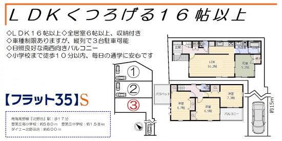 駐車2台可能な全4区画のうち、和室がある角地の3号地