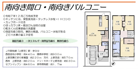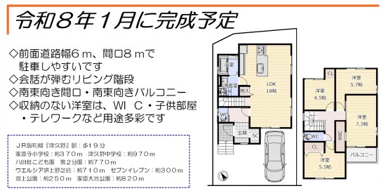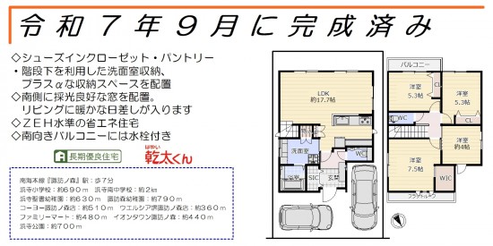 令和7年7月に完成! 南向き間口と南向きバルコニー、駐車2台可能なお家です