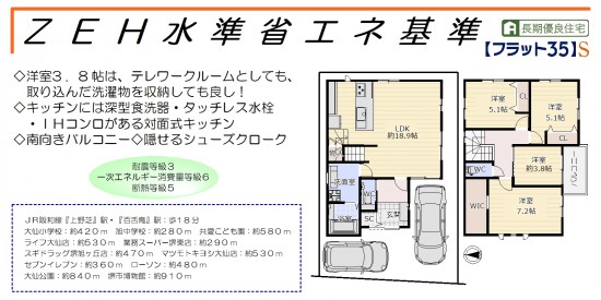 ZEH水準省エネ住宅! 前面道路幅約8mで駐車しやすいです