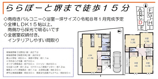 ららぽーと堺まで徒歩15分の全9区画、令和8年1月に完成予定