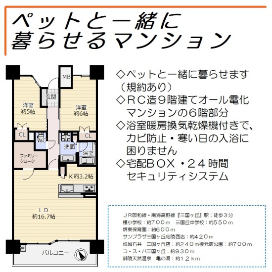 RC造9階建てオール電化マンション、ペットと一緒に暮らせます