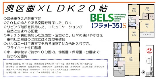 南向きバルコニーの全4区画、4LDK×大型パントリーの2号棟
